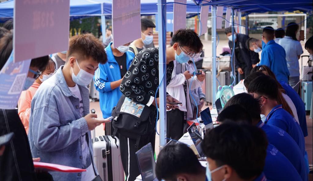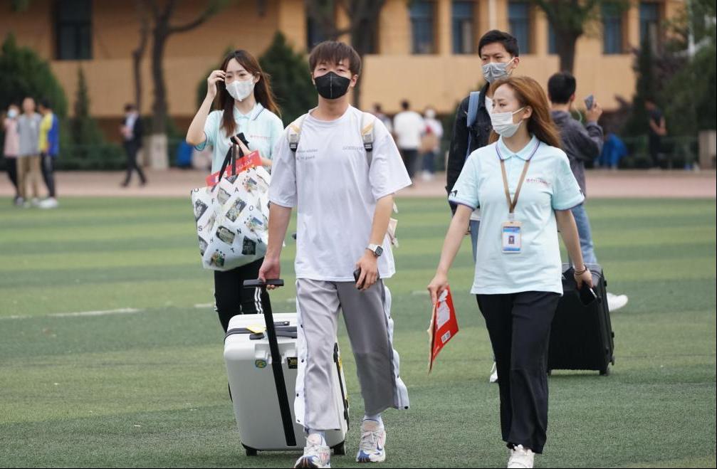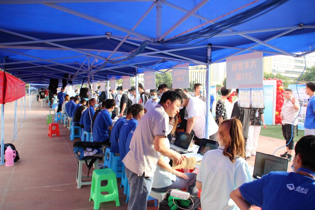 一大早操场上就迎来了新同学,志愿者们以最饱满的状态迎接第一位新同学的到来,热情地帮助新同学搬运行李,新生初到学校的紧张、顾虑慢慢被志愿者们的热情打消。在全国疫情进入常态化防控的背景下,由车站至宿舍,学院始终把防疫工作摆在重要位置。今年,新生入校时需佩戴口罩、测量体温、出示健康码以及录取通知书,保证每位新生得到细致周到的服务。