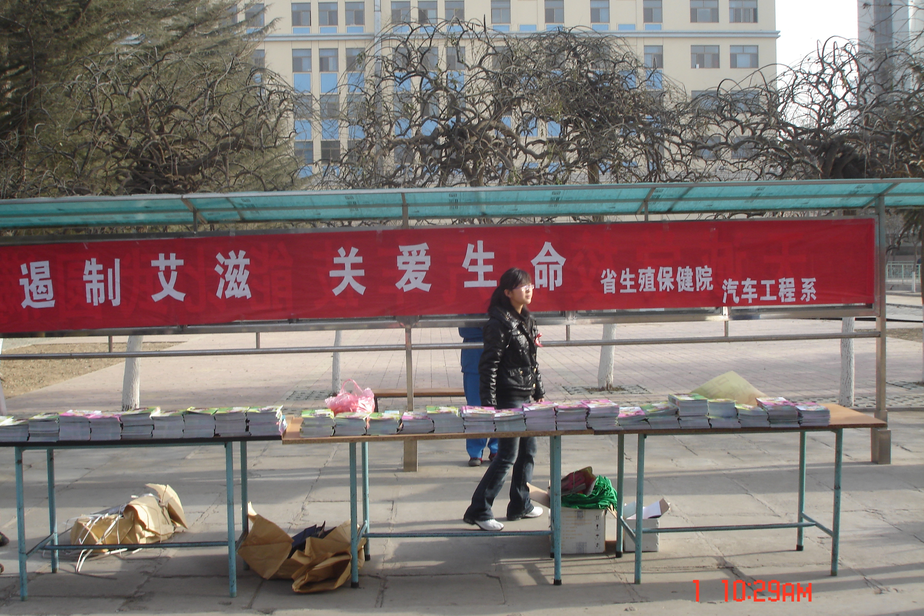 针对当今广大青年学生对预防艾滋病知识贫乏、艾滋病的预防知识了解很片面、对艾滋病蔓延的危机感和自我保护意识淡薄、对艾滋病病毒感染者和患者存在恐惧心理和厌恶情绪等情况,为唤起广大青年学生“正确对待艾滋病,关爱生命健康”的意识。12月1日,由汽车工程系发起的以“遏制艾滋,全名动员”为主题的大型宣传活动在我院西校区举行,宣传普及、预防艾滋病知识,呼吁同学们自觉的参与预防和控制艾滋病。通过悬挂宣传图片、散发宣传资料、签名、影像资料等方式进行宣传。宣传挂图和宣传资料生动形象的说明,吸引了不少同学驻足观看并为同学们佩带上红丝带。同学们进一步认识到艾滋病的危害,增强自我防范意识和防护能力,认识到艾滋病并不可怕,艾滋病人真正需要的是社会的正视和关爱,使同学们能正确对待艾滋病,积极主动预防艾滋病,关爱艾滋病病人。小小红丝带,系起你我他。预防艾滋病、关爱艾滋病病人,是当代大学生不可推卸的社会使命与责任。同学们更应该积极投入到这项社会性公益活动中来,为构建和谐社会、和谐校园贡献自己的力量。