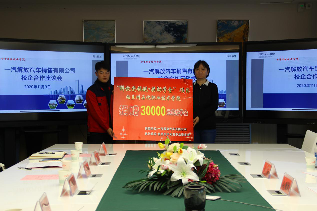 最后,周雪霞给“一汽解放班”的学生颁发企业奖学金,并就工作岗位、薪资待遇和职业发展等方面与学生进行了深入的交流,会后学生表示非常期待学成毕业后进入企业工作。