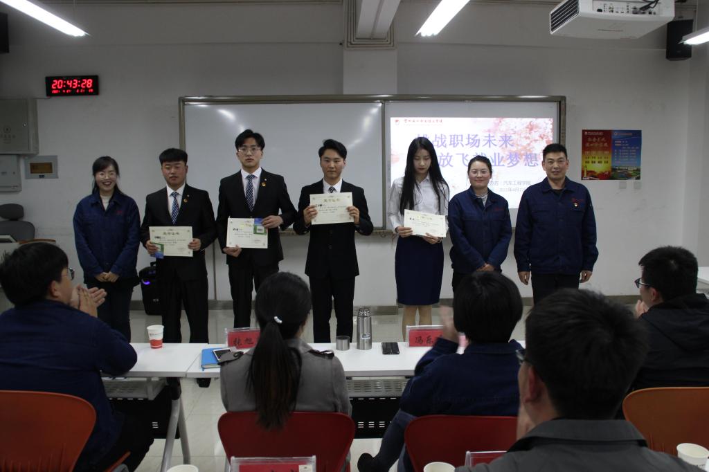 本次模拟面试大赛旨在让同学们切身感受求职面试的实际过程,通过模拟应聘相关职位,使同学们能更好的根据企业需求和自身的特长,做好职业规划,应对日益激烈的职场竞争。大赛分为“自我展示、压力面试、评委点评”三个环节。各位参赛选手以自我介绍为切入点,从多角度阐述个人对所竞聘岗位的认识及自己胜任该职位的优势。评委老师从专业性、个人能力、爱好、目标设置与人生态度等角度对选手进行全方位的分析,并进行了有针对性的提问和点评。最终,来自汽营191班的雷雨馨和空乘191班的周东以清晰的逻辑思维、灵巧的临场应变、流畅的语言表达,破解评委抛出的多个棘手问题,获得本次比赛一等奖。