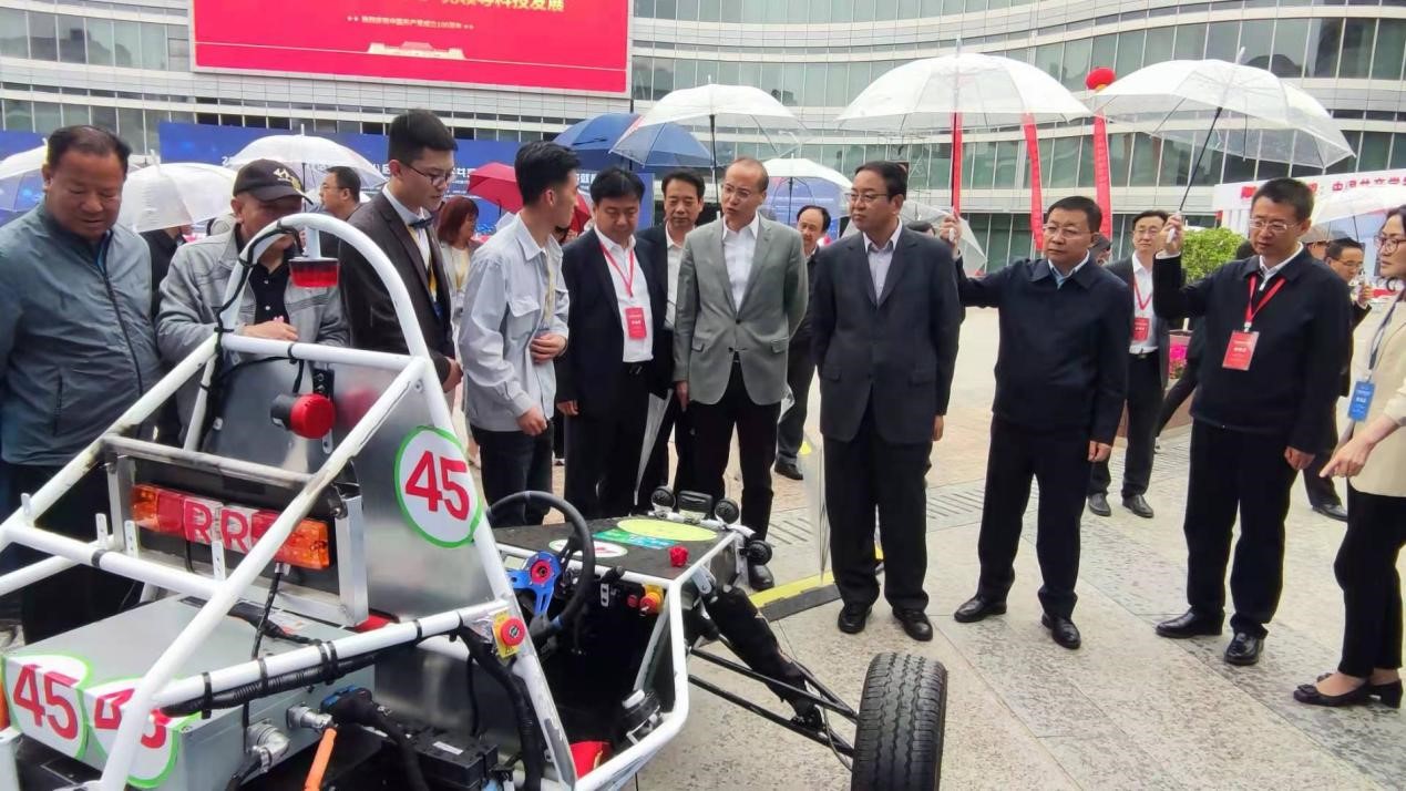 汽车学院教师韩振带领巴哈车队队员在现场展示了巴哈赛车Z35、轻量化赛车,独特的造型吸引了很多围观人员,我院参展团就车辆的制作、参加比赛和获奖情况给大家做了详细的介绍。同时,也向参会领导介绍了我院新颖的工程实践班教学模式,让学生团队通过制造赛车进一步掌握汽车结构设计、制造、装配、调校维护等多方面的知识技能,提高学生的团队合作能力、动手能力和交流能力。