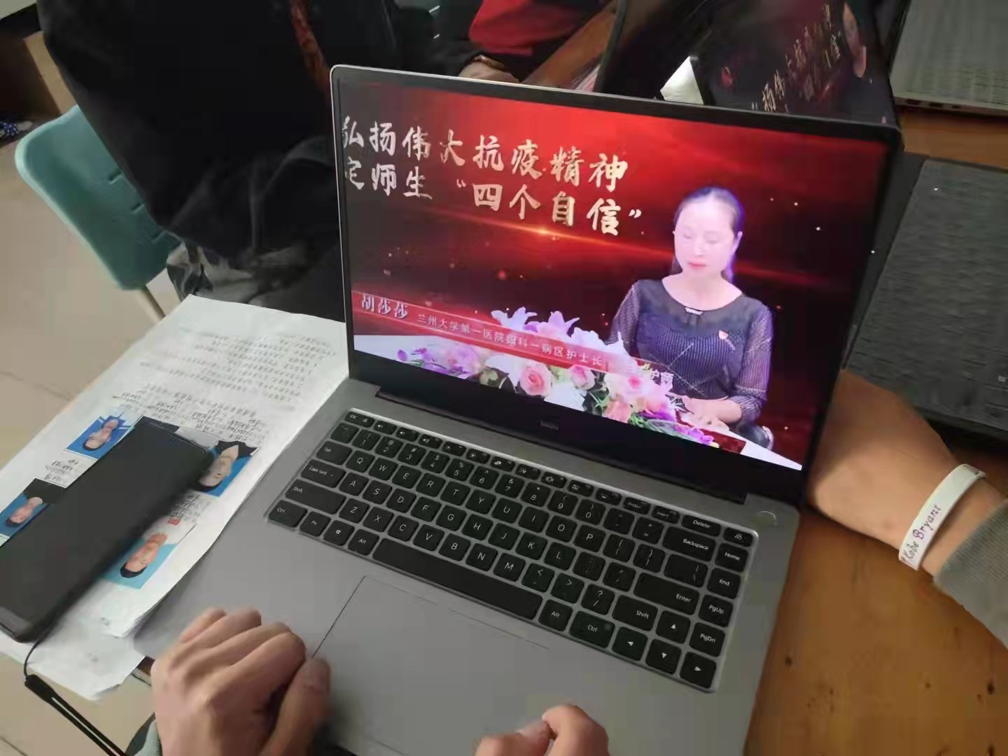 为大力弘扬伟大的抗疫精神,加强学校思想政治教育,10月25日,yl7703永利集团组织全体教职工和各班学生积极观看“同上一堂战‘疫’思政课”。