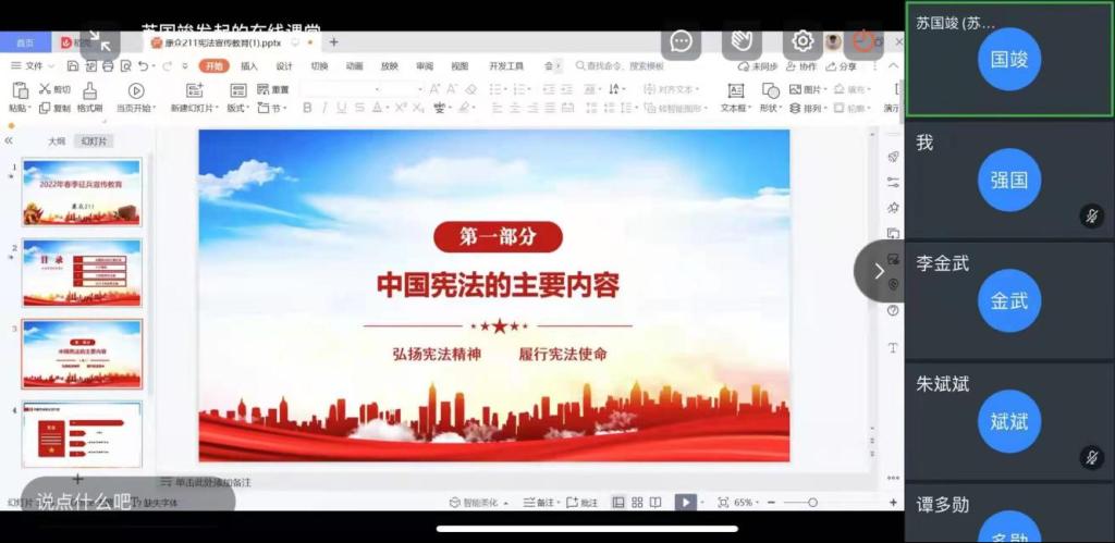 围绕“以习近平法治思想为指引坚定不移走中国特色社会主义法治道路”这一主题,汽车学院以“线上网络宣传+宪法进班级”这种线上线下相结合的方式,组织开展宪法进网络、进班级主题活动。学院组织学生登陆普法网,推送宪法宣讲视频,共学宪法,加强法制教育宣传,让同学们感受宪法的尊严,进一步培养宪法意识和法治观念,树立正确的价值观。班主任召开学宪法主题班会,通过一个个案例讲解,进一步增强学生的自我保护意识,让学生养成学法、懂法、依法办事的好习惯,有效地树立和维护学校良好的学风以及社会的稳定发展。