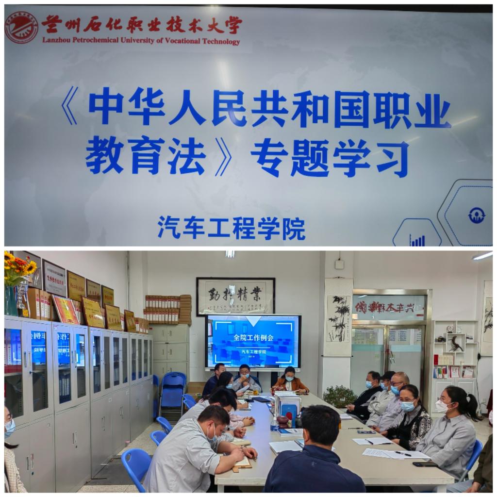 学院负责人表示,汽车学院将紧紧围绕学习贯彻新职业教育法来部署和开展工作。一是职业教育必须坚持中国共产党的领导,坚持社会主义办学方向,贯彻国家的教育方针,坚持立德树人、德技并修,坚持产教融合、校企合作,坚持面向市场、促进就业,坚持面向实践、强化能力,坚持面向人人、因材施教。二是要提高人才培养质量,深化,推动专业设置与产业需求对接、课程内容与职业标准对接、教学过程与生产过程对接、职业教育与终身学习对接,提高人才培养质量,强化职业教育的技术技能积累作用。三是提高师资水平,教师应及时把握社会需要什么行业的人才,对人才的需求有哪些变化,掌握自己专业的新知识、前沿技术,要善于学习,不断接受各行业的新情况,及时掌握新技术,一定要让学生好学、学好,成为全面的人才;四是开展以“贯彻实施新职业教育法”为主题的课题研究,推出高质量的研究成果。