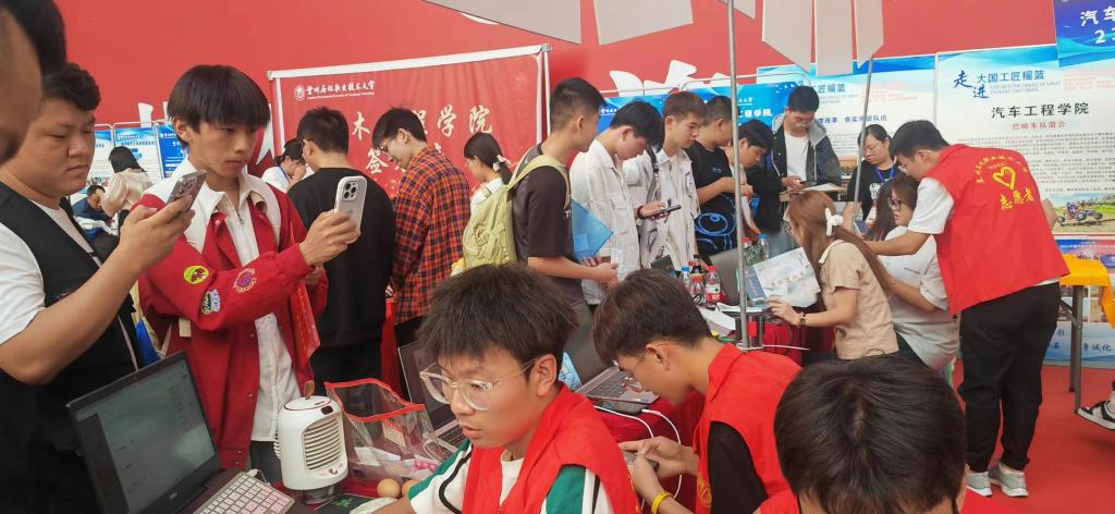 “你好,是新生吗?”志愿者们接过行李,带领新生到迎新点,做完注册登记,再去领取服装,然后带到公寓办理入住。从迎新点到公寓楼,车轮辘辘,带着志愿者们磨不灭的热情。收集档案,证明材料,传达相关政策,帮忙拿取行李、领路安顿……志愿者们用实际行动传递着奉献精神,在他们的帮助下,新同学们顺利完成报到。