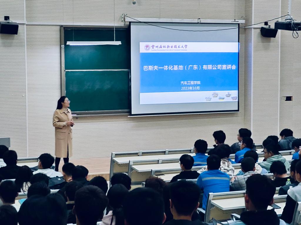 随后,黄志华先生以企业宣传片的形式将巴斯夫有限公司的产业成果、企业文化、企业发展历程向同学们做了展示。同时对巴斯夫一体化基地(广东)有限公司项目涉及的科技领域、专业方向、市场战略和产品类目等内容做了详细的介绍。 宣讲会后,企业代表与同学们进行了面对面交流,对同学们关心的企业实习的具体要求、人才培养目标、未来职业发展路径等做了耐心的解答。