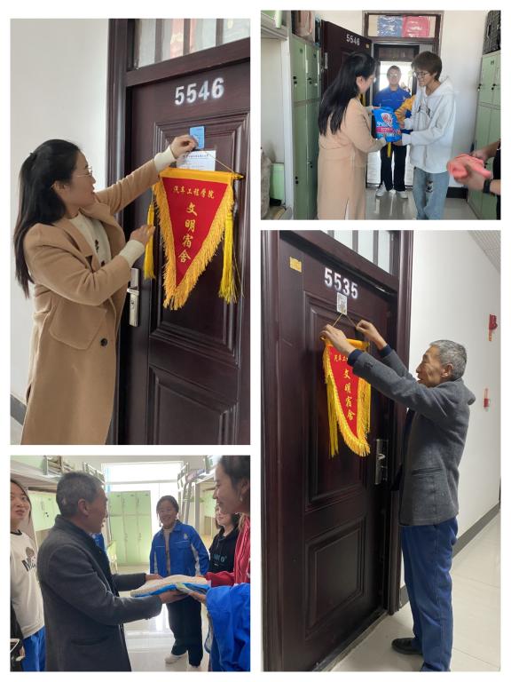 学院学生工作负责人给文明宿舍挂牌时对受表彰的宿舍表示热烈的祝贺,并指出“文明宿舍”评比活动,是学校文明校园创建的一项内容,是彰显校园精神文明成果的重要窗口,对学生养成健康有序的生活习惯,形成良好的学习氛围,营造团结向上、互助友爱的良好风尚具有深远意义。同时希望每位同学树立“宿舍是我家,文明靠大家”的意识,坚守社会公德、培育文明意识,做良好习惯的坚守者,文明校园的践行者。
