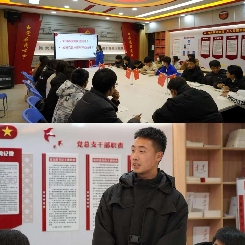 学院团总支负责人通过宪法知识宣讲和案例分析,结合生活实际给同学们细致讲解了宪法的地位和作用,阐释了宪法的修订过程和重要意义,介绍了“国家宪法日”的相关知识,与会同学积极探讨和交流作为青年大学生应该如何积极有效弘扬宪法精神,树立法律权威;随后开展了宪法知识竞答、与会同学分享了学习感悟,在普及宪法知识的同时,让同学们深入理解宪法的基本原则和精神内涵,充分认识到以宪法为纲、知法守法的重要性,让大家对于宪法在实际生活中的职能有了更加清晰地认知,积极引导同学们成为宪法的忠实崇尚者、自觉遵守者和坚定捍卫者。
