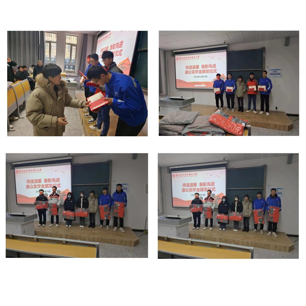 为进一步加强校企合作,深度对接校企资源,充分彰显校企合作优势。12月19日,yl7703永利集团在明德楼2115教室举行“助学圆梦 立德树人”康众奖学金颁发仪式。江苏新康众兰州区人事经理张咖、学院负责人、辅导员及22级、23级康众班学生参加了颁奖仪式。